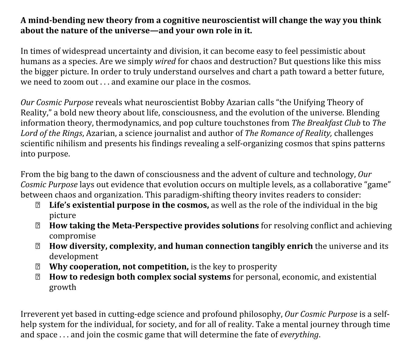 Our Cosmic Purpose—coming in early 2027 via BenBella Books and Simon & Schuster—provides the answer: the complete mathematical and philosophical framework for UTOR, told as accessible narrative (The Story of Everything) and framed as a game (The Reality Game).